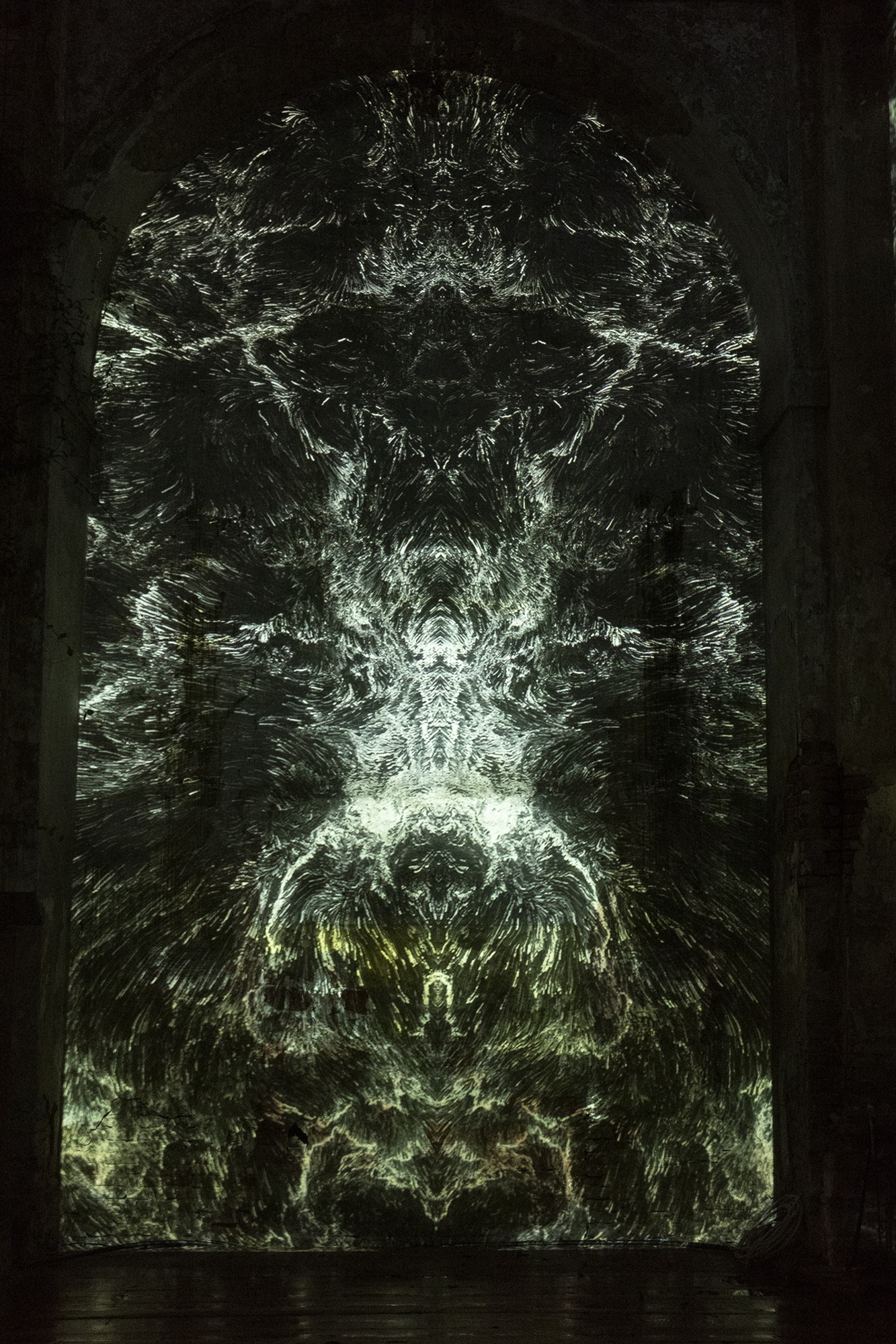 Con Flow State, Lorenzo Crosti (SATOЯ) realizza un ambiente visivo e generativo. Un flusso continuo di trasformazioni in cui le immagini proiettate evolvono secondo processi che non si fondano sull’AI, ma producono configurazioni sempre diverse e imprevedibili. Il risultato è un’esperienza immersiva che dialoga direttamente con il vuoto architettonico dell’ex chiesa, invitando lo spettatore a sostare in una temporalità instabile e non lineare.