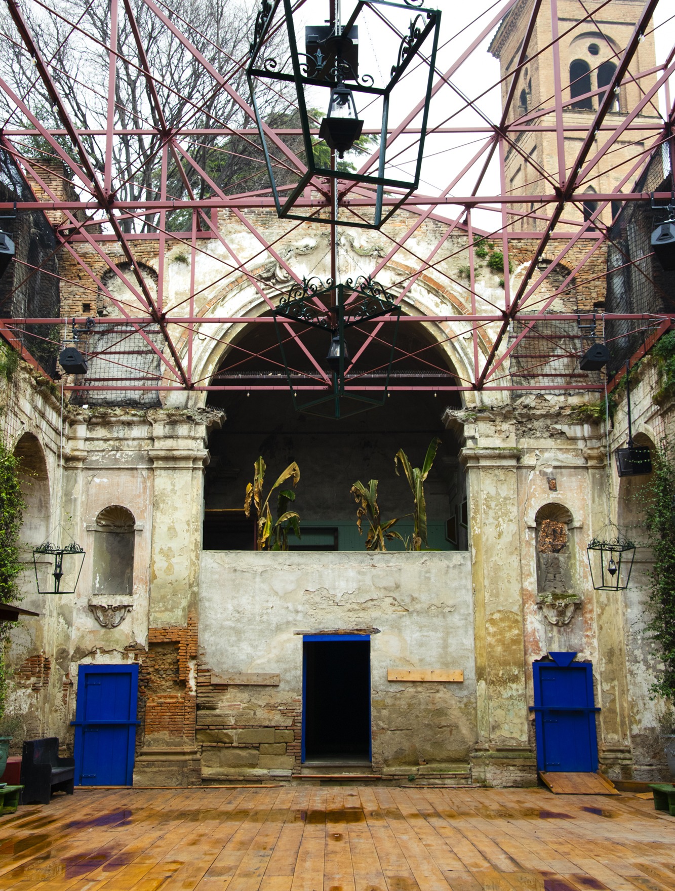 Entrando, i rumorosi lavori delle strade lasciano spazio a una dimensione indefinita e silenziosa. Edificio religioso, privato del tetto ma ricoperto di piante, sconsacrato e abbandonato da tempo, richiama alla memoria l’abbazia di San Galgano in Toscana e la chiesa dello Spasimo a Palermo.