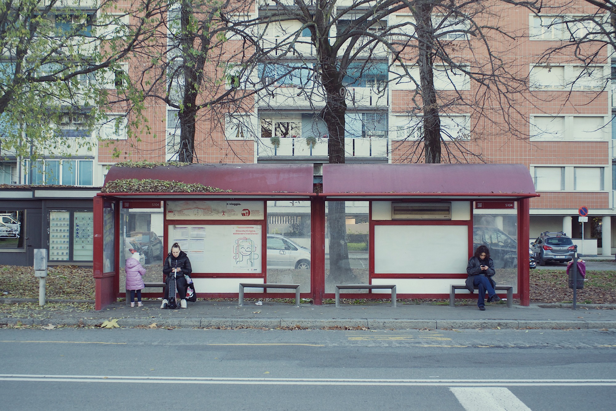 Quando il vostro sguardo assente interrompe il flusso di pensieri per cercare un posto a sedere in attesa del bus, mettete a fuoco qualcosa di insolito. Vicino alle pensiline rosse della fermata, invece delle gelide panche di ferro, potete optare per una fila di quattro sedie in legno, unite tra loro. Seguendo l’istinto, vi sedete senza rifletterci troppo e…inizia il film!
