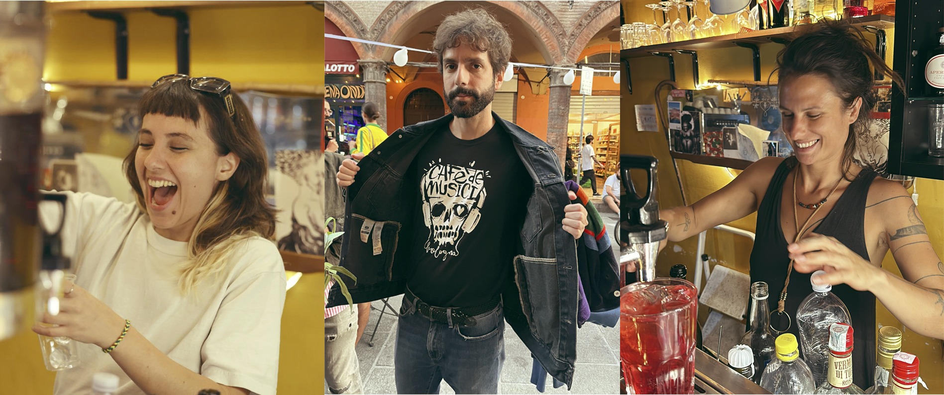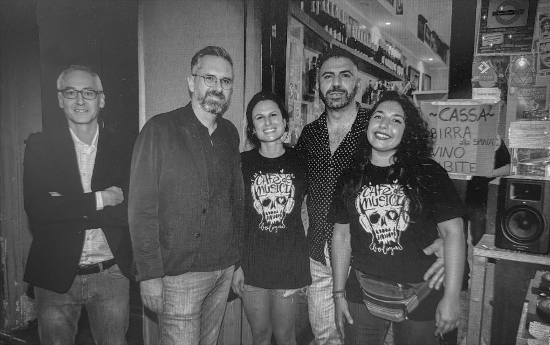 È così che si ritrovano tra le mani un magazzino completamente vuoto. Non c’era niente, solo qualche idea e un giradischi. “Tutto si è sviluppato pian piano, non siamo partiti a razzo. Abbiamo prima messo la musica, poi il resto”. E a questo punto gli torna alla memoria di quella volta che era a Monaco per un concerto e, entrato in un bar pieno di italiani, inizia a chiacchierare con una ragazza. “Non so come il discorso sia finito su Bologna, ma lei, quando nomino la città, ci tiene a dirmi che è bolognese. Io le rispondo che lì ho un bar. E al nome Caffè de Musici, lei sgrana gli occhi e mi dice: ma quello col giradischi?”