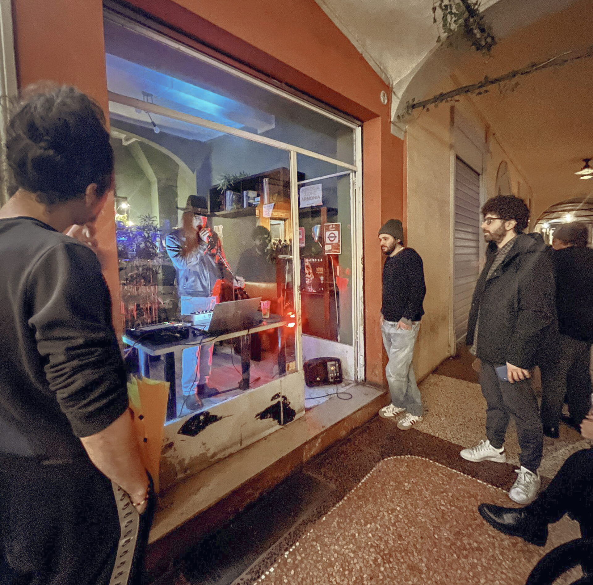 Si chiama Cafè de musici e sta in fondo a Strada Maggiore, al numero 88. Ha un dehor e due piccole stanze che non comunicano tra loro. In una c’è il bar, nell’altra un pianoforte, due casse, due tamburi e una chitarra, mixer e microfono, sedie e luci soffuse. Ci sono anche una pianta vera e un foglio appeso con la scritta: cosa trovi di magico in questo mondo?