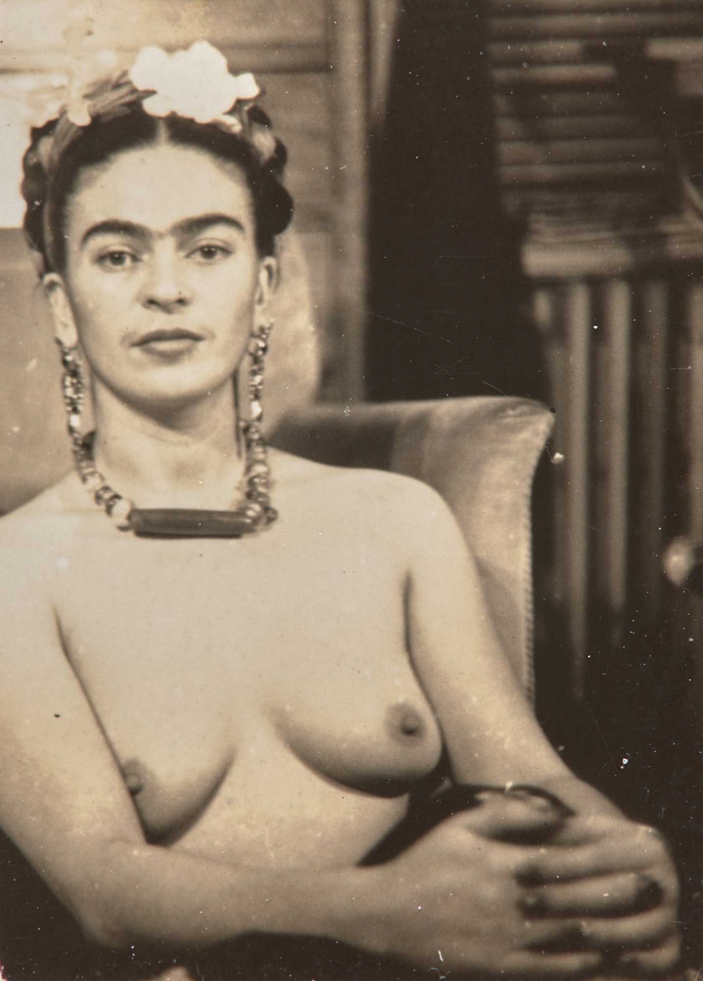Per questo è oggi una delle artiste più auto rappresentate e riprodotte del Novecento. Ha costruito il proprio sé come immagine attraverso pittura, posa fotografica, abito, trucco e oggetti in modo sempre consapevole. Frida si veste come si dipinge. Si lascia fotografare in modo coerente con questa costruzione. Pittura e fotografia diventano inseparabili.