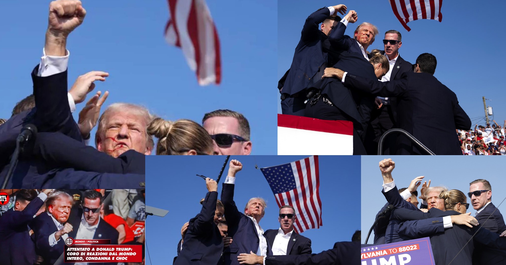 L’immagine ritrae un Donald Trump inedito: non l’icona di potere che domina la scena, ma un uomo colpito, scortato di corsa dagli agenti del Secret Service, con il sangue che gli segna l’orecchio mentre lascia il palco del comizio in Pennsylvania.