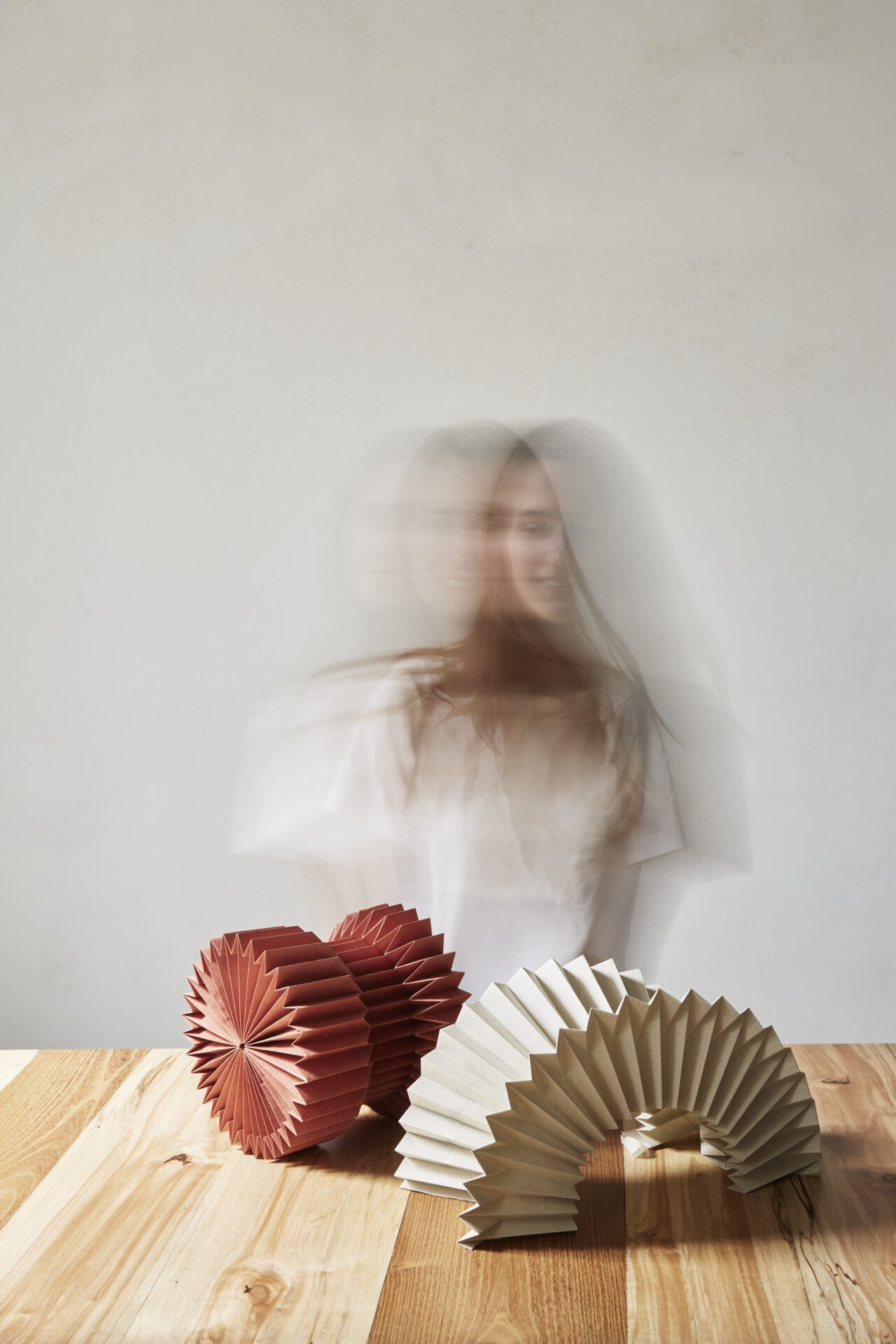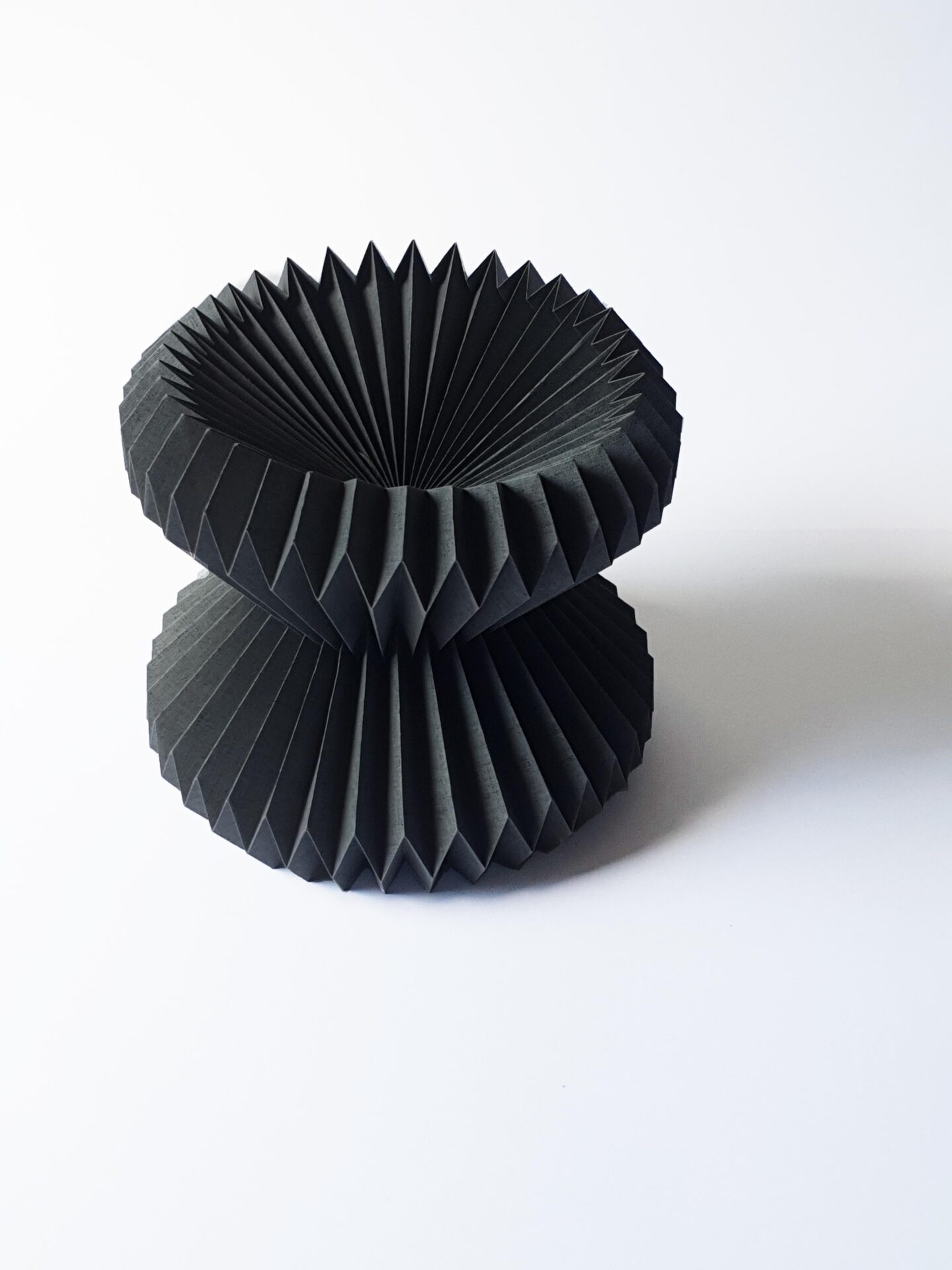 Era il 2020, durante il periodo del lockdown, non certo un momento facile per inserirsi nel mondo del lavoro da neolaureata, così ho cominciato ad approfondire e fare ricerca, scoprendo persone che lavoravano solo la carta, per scenografie, pop-up, allestimenti. Vedevo progetti, realizzazioni e meccanismi, rendendomi conto che riuscivo a capire come erano fatti. Ho iniziato a fare i primi esperimenti da autodidatta, spostandomi dal pop-up all’origami. Nell’origami si fanno piegature, mai tagli, né colla. Mi piace molto a livello visivo, perchè è una modellazione scultorea, architettonica, con movimenti geometrici, rigidi.”