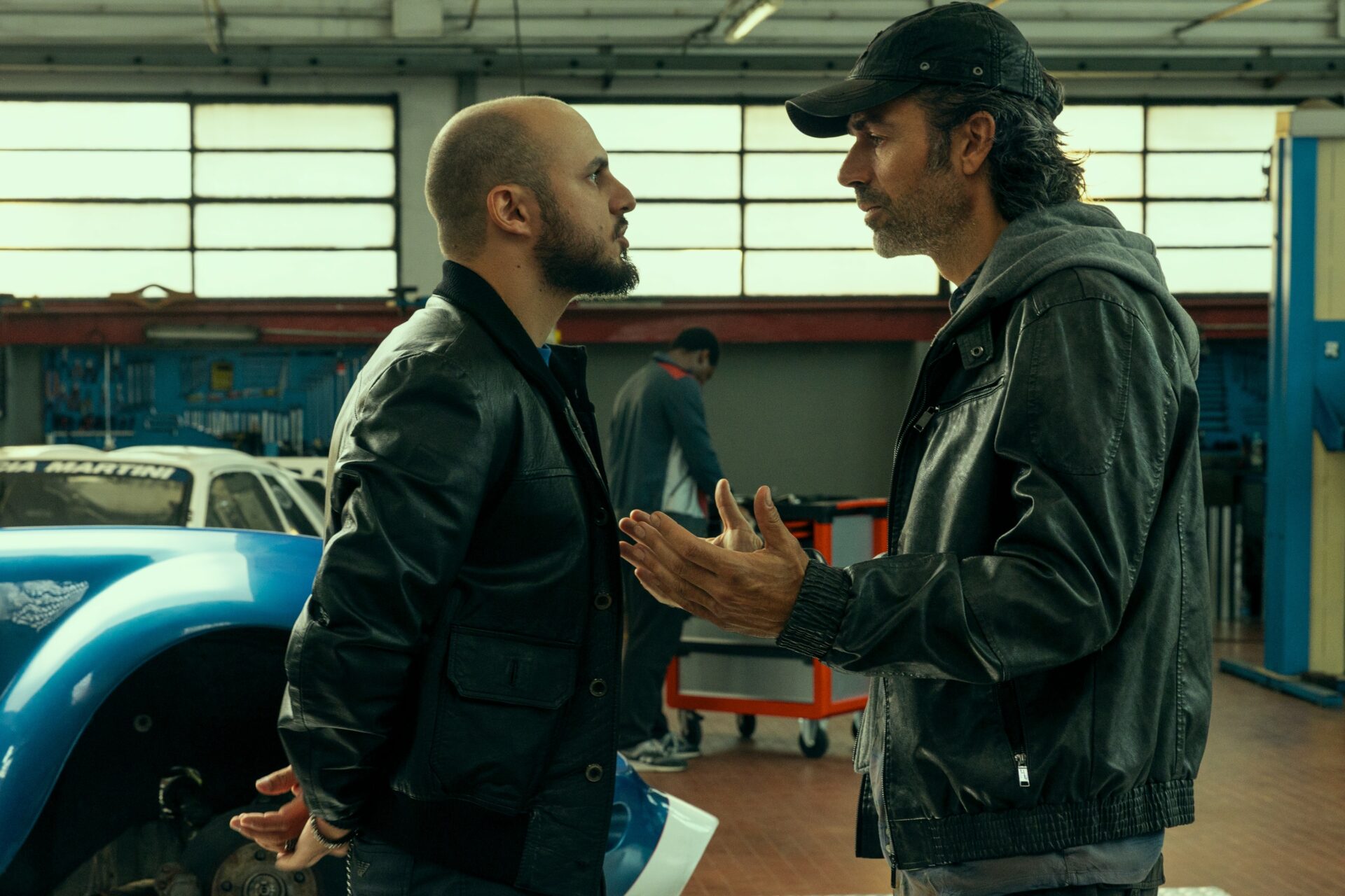In questo equilibrio sottile entra Sergio Casadio, interpretato dall’attore bolognese Leonardo Bianconi (Qui la nostra intervista in occasione di Qui non è Hollywood, la serie sul delitto di Avetrana). Figura ambigua e magnetica, boss della malavita locale che si muove nel mondo sommerso delle supercar e dei debiti. Manipolatore, imprevedibile, tiene letteralmente in mano il destino degli altri. È una presenza che incarna il lato oscuro della velocità: quello che seduce, promette e poi ti presenta il conto.
